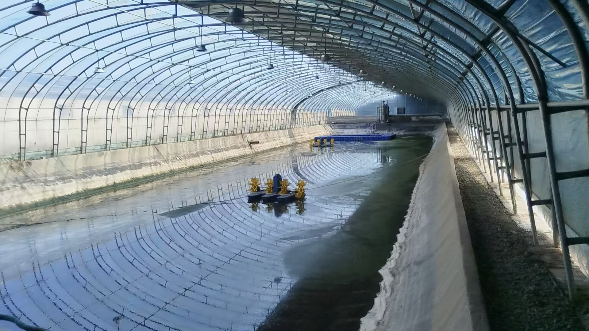 2.保溫水處理棚:建築麵積1664平方米,雙層輕鋼結構,配套生物操縱池、貯存池、礦化過濾池、生物絮凝反應池(SBR池)及物資庫等;